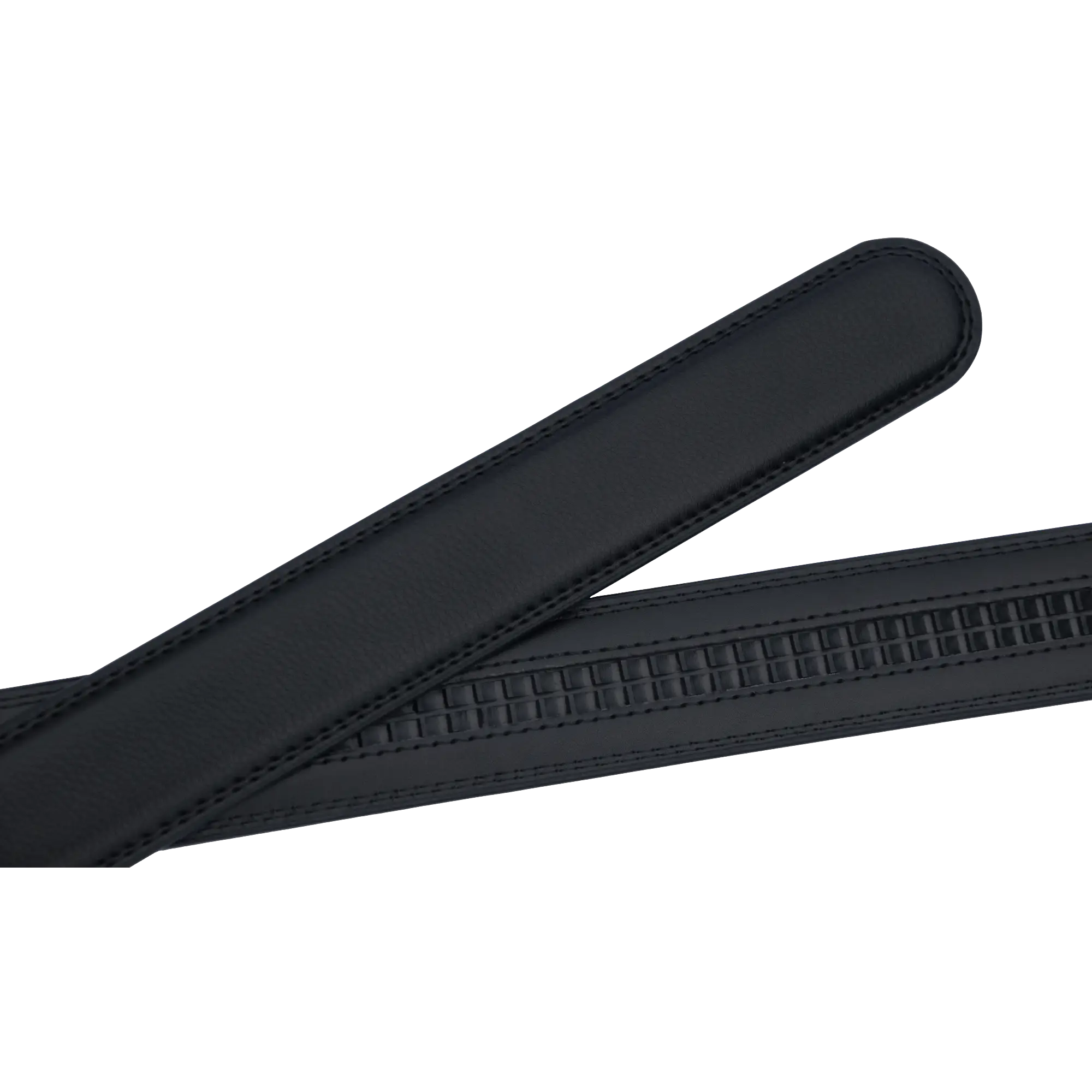 Er zitten geen gaten in onze riemen. Zo is niet alleen slijtage van de riem minder zichtbaar, maar slijten onze riemen ook minder